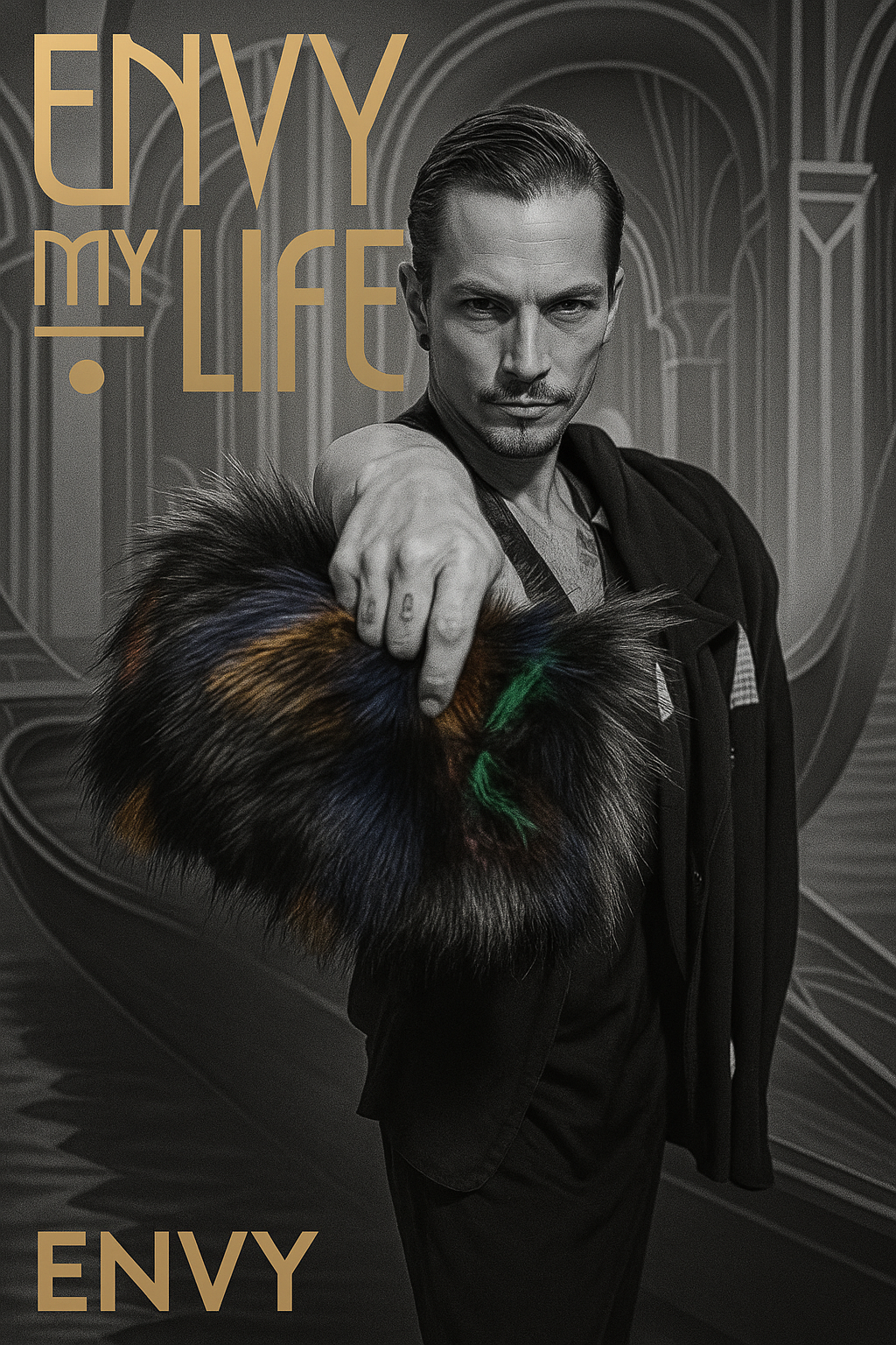 Hand-dyed genuine silver fox bag: Would you expect anything less for my first limited edition release? Finished with a zipper closure, detachable gunmetal chain as well as detachable leather wrist strap. Unlike most guys who put vers in their Grindr profile, this bag truly is versatile as it transitions effortlessly from statement clutch to crossbody. I've been using my working prototype and without fail, everywhere I go from gallery shows, restaurants, the theatre, even jaunting around little villages in central Greece, everyone comments on the bag.