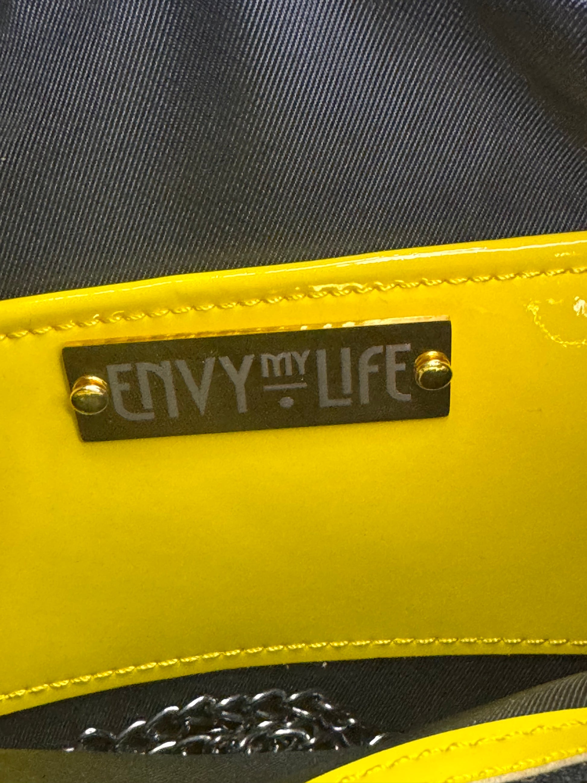 The interior features an eco-leather trim in vibrant yellow with dual pockets for form and function. Interior D-Ring lets you clip your keys in securely so you aren't digging through your bag looking for them.
