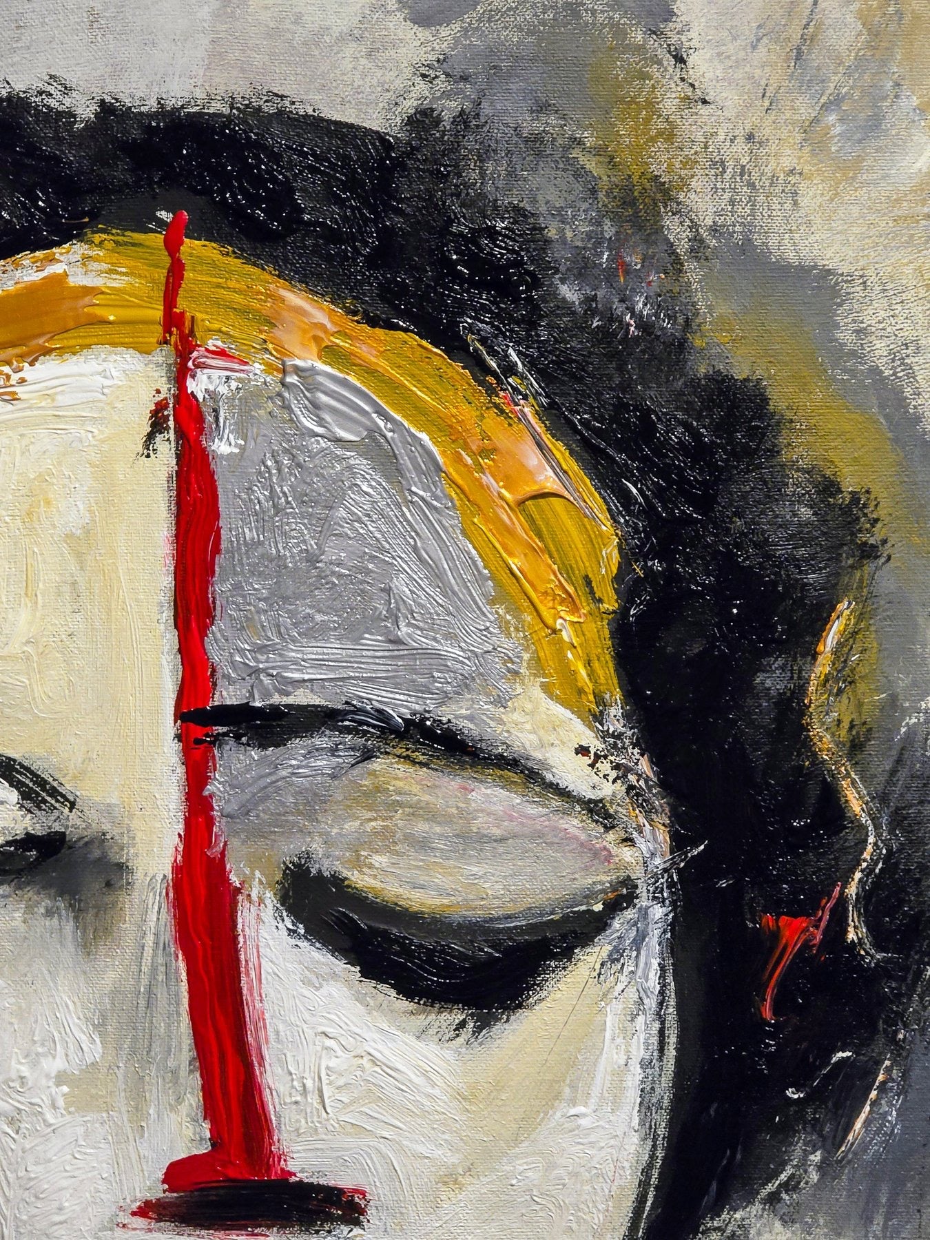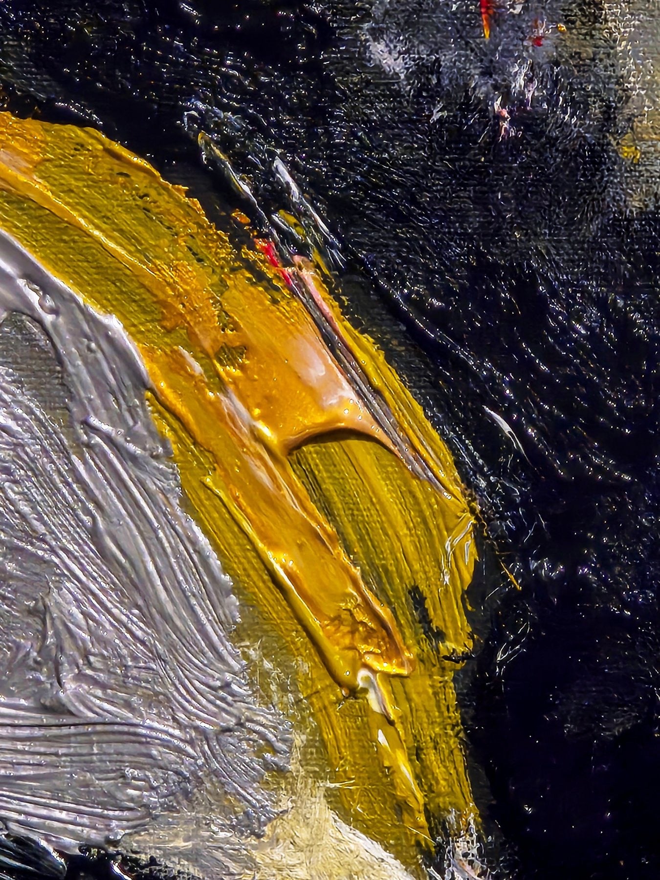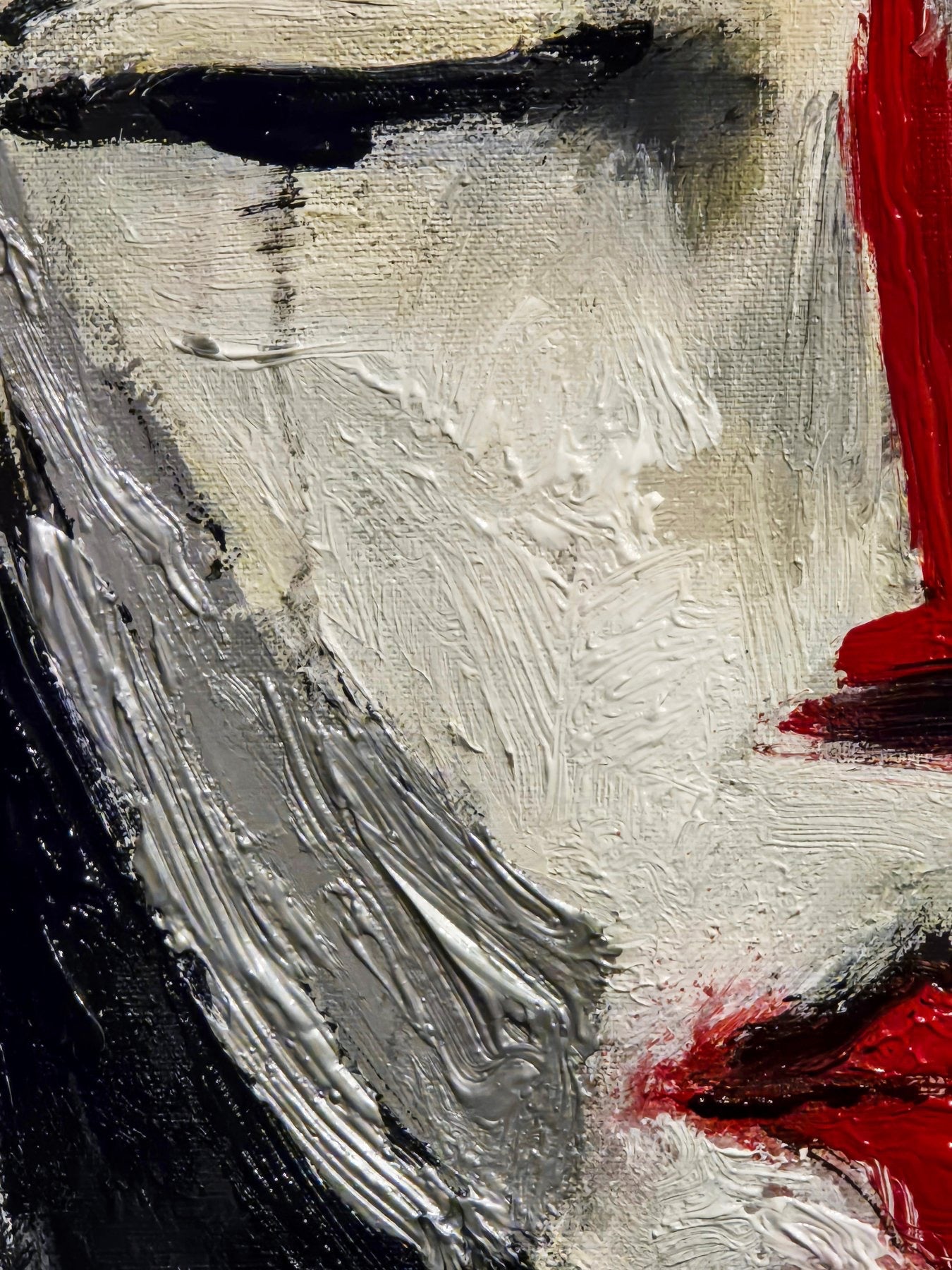 A singular work of character portraiture by acclaimed artist Arvydas Gaiciunas (Retne). This museum-quality piece is meticulously hand-painted with professional-grade acrylics on premium gallery canvas (360 g/m²), then sealed with UV-protective varnish for lasting brilliance. Measuring 90x70 cm with integrated 5 cm stretching margins that extend the composition, the canvas arrives rolled in archival-grade packaging with artist authentication. Signed and dated by the creator. Certificate of Authenticity included.